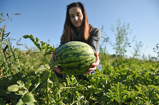 Dozrává druhá várka vodních melounů farmářů z Útěchoviček. Na snímku jednatelka farmy Gabriela Pechová.