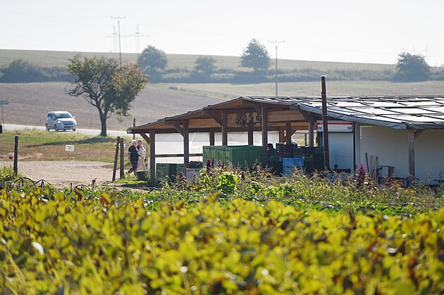 Mladí farmáři v Útěchovičkách prodávají své produkty přímo na poli hned u silnice.