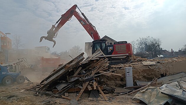 Po pondělním výbuchu plynu, který značně poškodil statiku domu, musela být budova v Havlíčkově ulici srovnána se zemí. (25. března 2025)