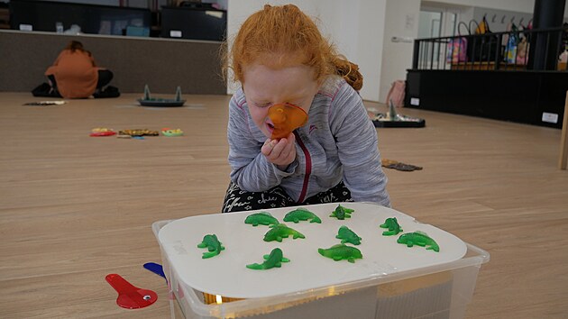 V hodinách děti aktivují své smysly - mimo jiné hmat, čich nebo zrak.