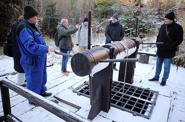 Lezné oddělení využívali horníci k vlastnímu vstupu do dolu, zatímco vrátkem (na snímku) vytahovali nahoru vytěžený materiál.