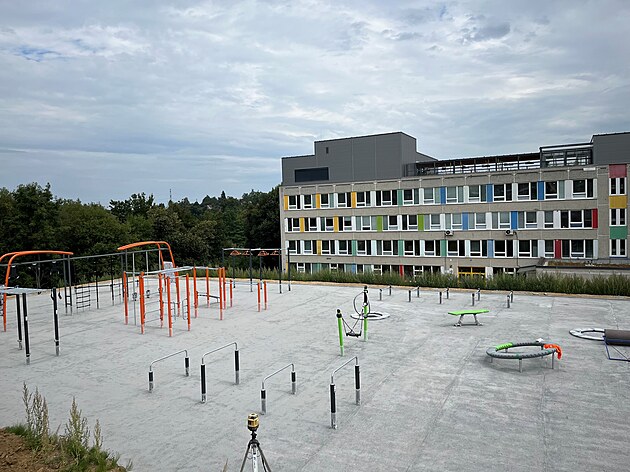 Nové sportoviště u základní školy Nuselská už je v některých částech takřka před dokončením. Toto je workoutová sekce.