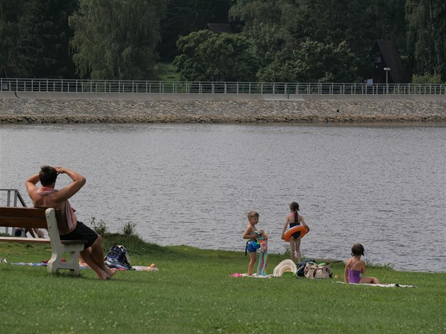 Jako nevhodnou ke koupání vyhodnotili hygienici tento týden Pilskou nádrž. Ale jak dokládá snímek z konce minulého týdne, lidé do vody dál chodí.