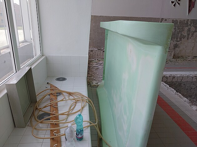 Demoliční práce na vybourání původních van v jihlavském bazénu Evžena Rošického museli být zastaveny. Co dál, nyní budou experti řešit. (15. srpna 2025)