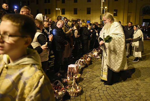 Tři tisíce věřících, převážně Ukrajinců, se v noci ze soboty na neděli zúčastnilo v jihlavském chrámu sv. Ignáce pravoslavné velikonoční bohoslužby. (20. dubna 2025)