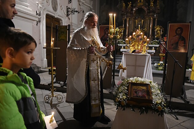 Tři tisíce věřících, převážně Ukrajinců, se v noci ze soboty na neděli zúčastnilo v jihlavském chrámu sv. Ignáce pravoslavné velikonoční bohoslužby. (20. dubna 2025)