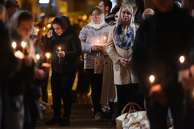 Tři tisíce věřících, převážně Ukrajinců, se v noci ze soboty na neděli zúčastnilo v jihlavském chrámu sv. Ignáce pravoslavné velikonoční bohoslužby. (20. dubna 2025)