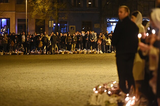 Tři tisíce věřících, převážně Ukrajinců, se v noci ze soboty na neděli zúčastnilo v jihlavském chrámu sv. Ignáce pravoslavné velikonoční bohoslužby. (20. dubna 2025)