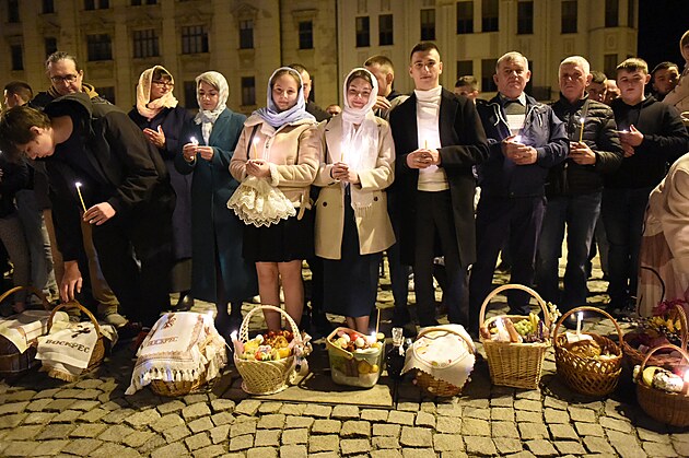 Tři tisíce věřících, převážně Ukrajinců, se v noci ze soboty na neděli zúčastnilo v jihlavském chrámu sv. Ignáce pravoslavné velikonoční bohoslužby. (20. dubna 2025)