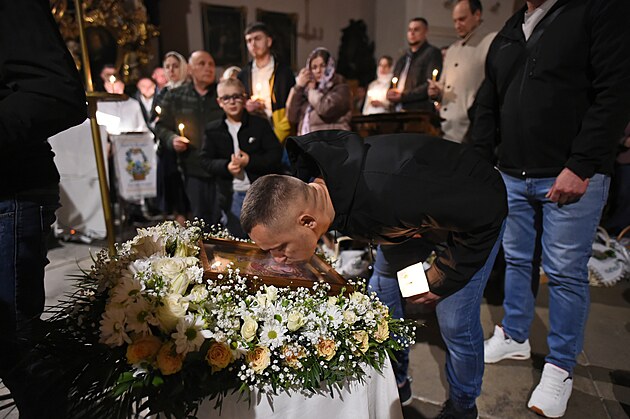 Tři tisíce věřících, převážně Ukrajinců, se v noci ze soboty na neděli zúčastnilo v jihlavském chrámu sv. Ignáce pravoslavné velikonoční bohoslužby. (20. dubna 2025)