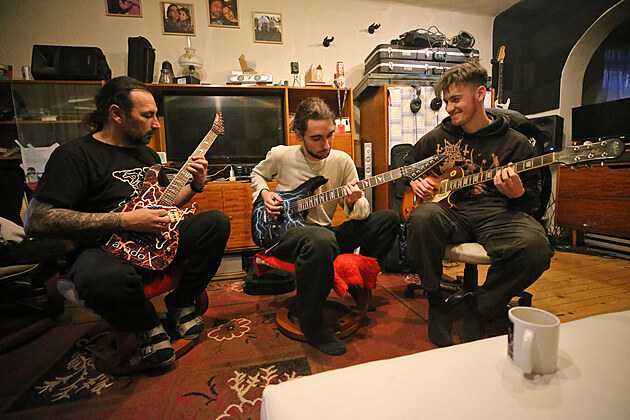 Nahrávají a zkouší v domáckém prostředí. Zleva Radek a Max Dolejší, Marek Špejtek.