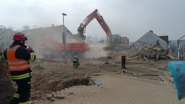 Po pondělním výbuchu plynu, který značně poškodil statiku domu, musela být budova v Havlíčkově ulici srovnána se zemí. (25. března 2025)