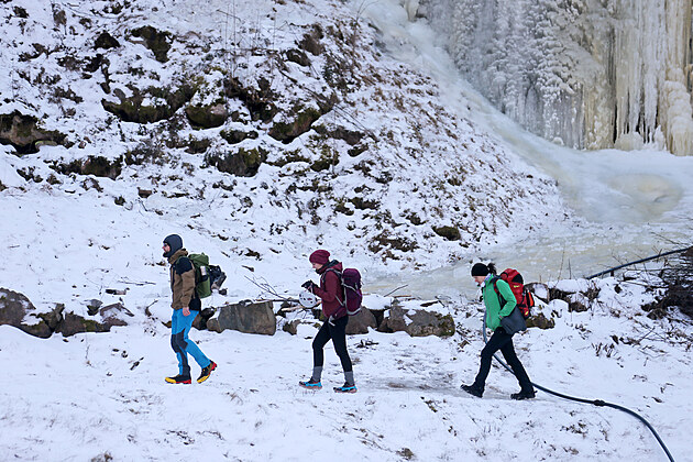 Ledová stěna ve Víru zahájila zimní sezonu. Kvůli nestálému počasí se tak stalo výjimečně pozdě. (20. února 2025)