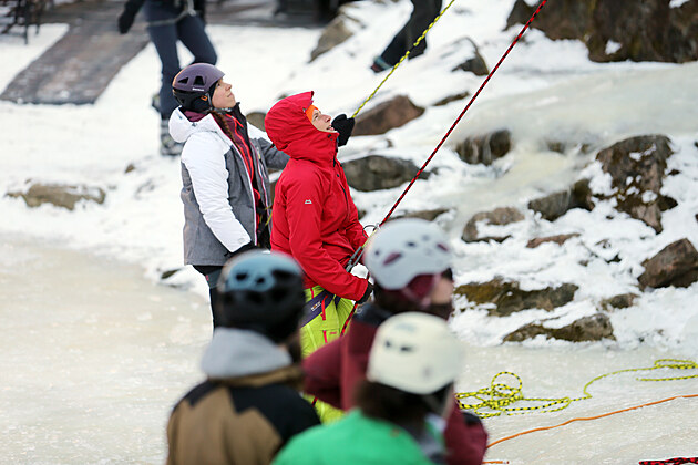 Ledová stěna ve Víru zahájila zimní sezonu. Kvůli nestálému počasí se tak stalo výjimečně pozdě. (20. února 2025)