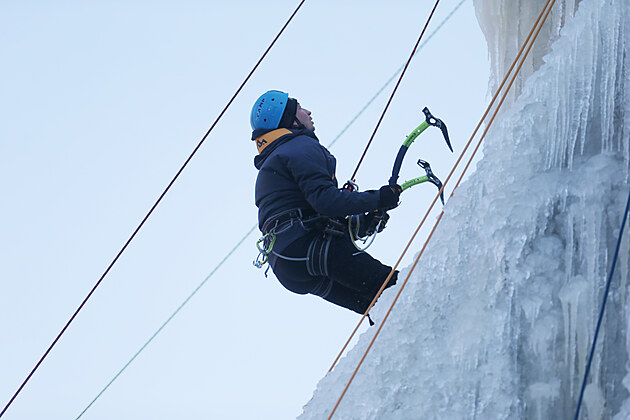 Ledová stěna ve Víru zahájila zimní sezonu. Kvůli nestálému počasí se tak stalo výjimečně pozdě. (20. února 2025)