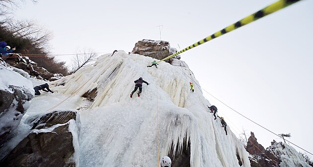 Ledová stěna ve Víru zahájila zimní sezonu. Kvůli nestálému počasí se tak stalo výjimečně pozdě. (20. února 2025)