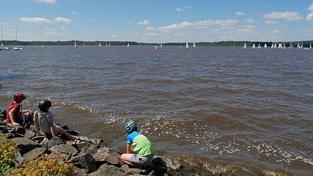 Letní sezona u Moře Vysočiny je v plném proudu. K rybníku míří turisté, cyklisté, milovníci koupání i hosté kempů.