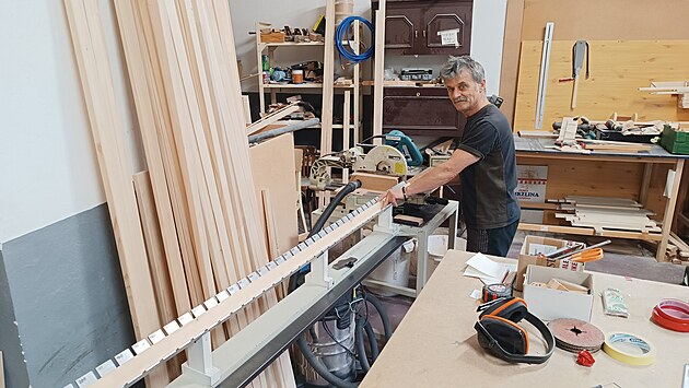 Součástí přibyslavského provozu je i truhlářská dílna. V ní si firma sama připravuje dřevěné latě. Tak dlouhé, jak potřebuje, totiž běžně k dostání nejsou.