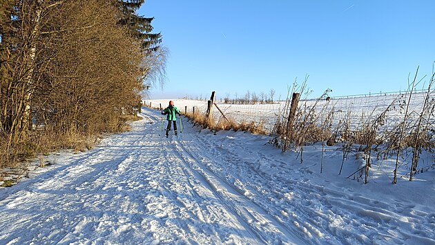Lyžovat se zatím dá i v okolí Žďáru. Stopy jsou ve skiareálu u Pilské nádrže nebo třeba za sídlištěm Pod Vodojemem (na snímku).