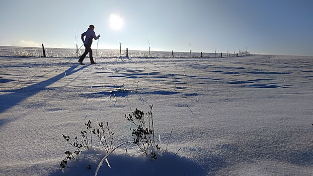 Lyžovat se zatím dá i v okolí Žďáru. Stopy jsou ve skiareálu u Pilské nádrže nebo třeba za sídlištěm Pod Vodojemem (na snímku).