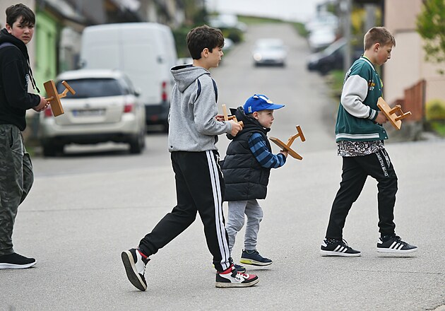 Mohelnem obcházeli velikonoční hrkači a klepači. (19. dubna 2025)
