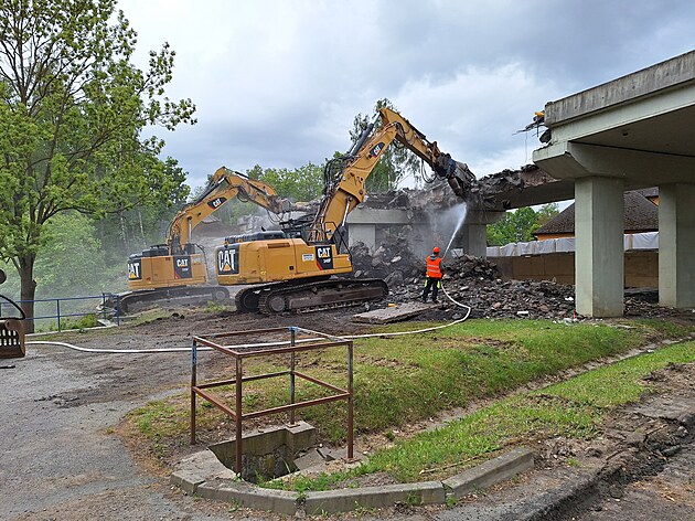 Bagry s hydraulickými nůžkami silniční most v uplynulých dnech doslova rozstříhaly. Vozy odtud odvezly dva tisíce tun suti.
