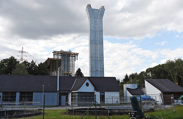 Všechny nejvyšší pilíře vysokého silničního mostu na budoucím obchvatu Brtnice už stojí. Jeden z nich se právě dokončuje, další již jsou postaveny.