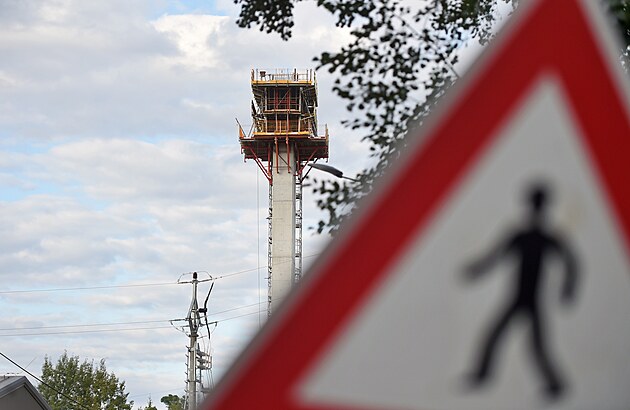 Všechny nejvyšší pilíře vysokého silničního mostu na budoucím obchvatu Brtnice už stojí. Jeden z nich se právě dokončuje, další již jsou postaveny.