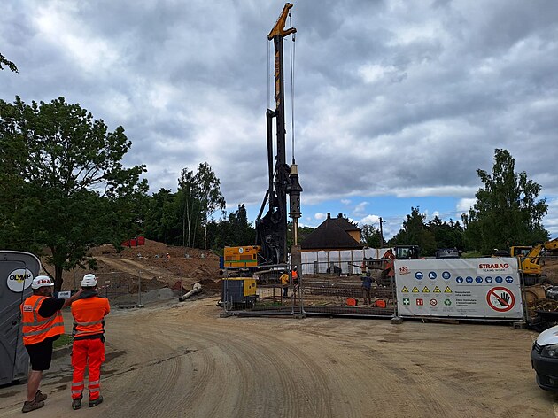 Na stavbě nového mostu v Habrech nyní pracuje největší vrtná souprava v Česku. Až do třináctimetrové hloubky zarazí celkem 30 pilot. V plném nasazení je rovněž parta svářečů.