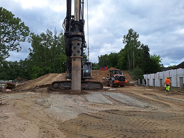 Na stavbě nového mostu v Habrech nyní pracuje největší vrtná souprava v Česku. Až do třináctimetrové hloubky zarazí celkem 30 pilot. V plném nasazení je rovněž parta svářečů.