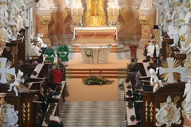 Ve Žďáře nad Sázavou se odehrála svatohubertská mše. Myslivci v jejím úvodu přinesli do kostela daňka s impozantním parožím.