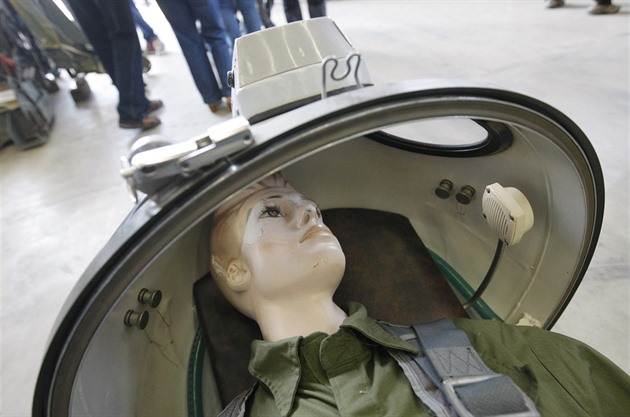 Život měla zachraňovat hyperbarická přetlaková kyslíková komora, tubusu podobné zařízení, vystavené v hangáru ve vojenské přenosné variantě.
