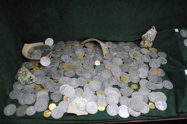„V díře byl dnem vzhůru malovaný džbán naplněný 284 mincemi. Datujeme jej přibližně do doby od druhé poloviny 15. století až po 30. léta 17. století,“ upřesňuje Zimola. Společně s kolegy místo podrobně prozkoumal, ale žádné další cennosti už neobjevili.