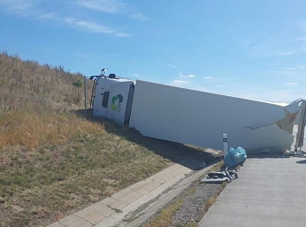 Nehoda nákladního auta a autobusu na D1. Lehce zraněn byl řidič nákladního vozu, drobně ošetřit se nechal i jeden cestující z autobusu. (26. srpna 2025)