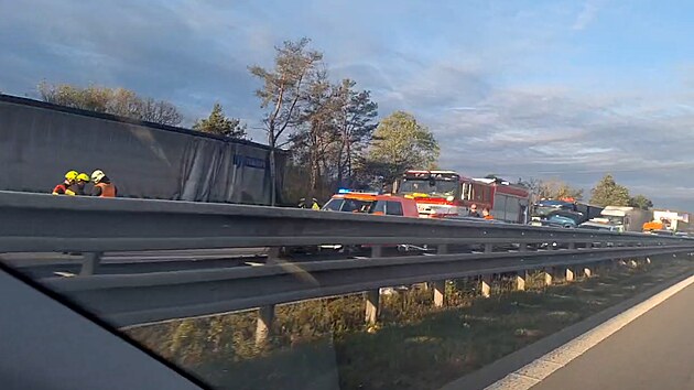 D1 na Brno stojí. Dodávka bourala do odstaveného náklaďáku