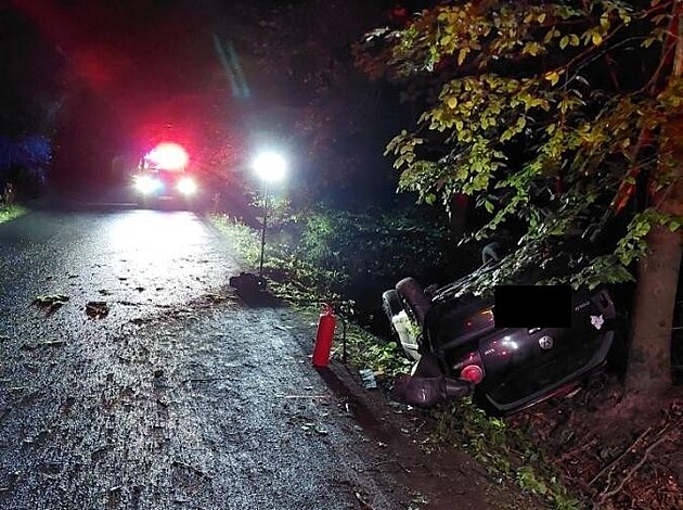 Dvacetiletý řidič havaroval do příkopu poté, co mu přes cestu přeběhlo stádo srnek.