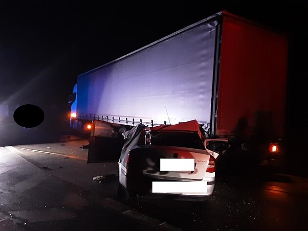 Řidička v osobním voze na D1 u Měřína narazila do špatně odstaveného kamionu.