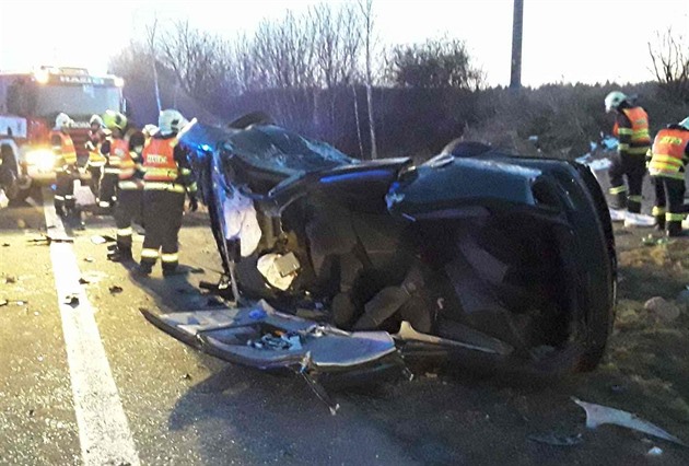 „Přejel vlevo přes protisměrný pruh do příkopu, kde narazil přední částí vozidla do betonového mostku,“ uvedla policejní mluvčí Dana Čírtková. Vůz po nárazu zůstal na boku na kraji silnice.