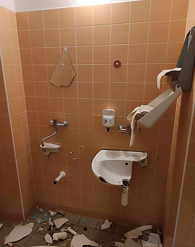 Agresivní pacient v noci na sobotu 2. září totálně zdemoloval vybavení pánských toalet na chirurgickém oddělení pelhřimovské nemocnice.