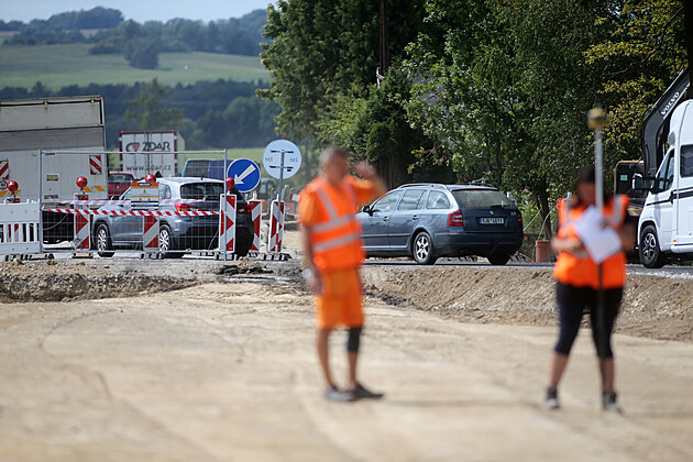 Práce na přestavbě nebezpečné nepřehledné křižovatky na silnici I/34 u Květinova na Havlíčkobrodsku se naplno rozběhly. (srpen 2025)