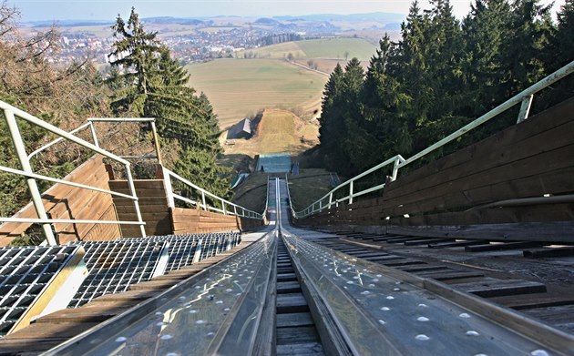 "Pokud je ale dostatek sněhu, tak můstky upravujeme. Rádi skáčeme i v létě na umělé hmotě, kterou máme dovezenou z Finska. Plechovou stopu na můstcích vyrobili v Novém Městě. Skákání v létě je bezpečnější," popsal trenér skokanů Rostislav Latzka, který jinak pracuje v novoměstské nemocnici.