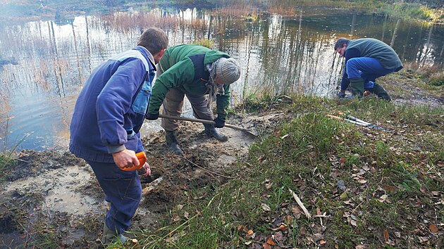 Po redukci zeleně přišla na řadu úprava břehů, kde vznikly písečné pláže pro vzácné plavuně.