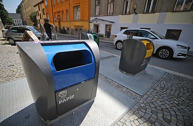 Jedno z minima veřejných míst, kam může obyvatel centra Jihlavy donést roztříděný odpad. Nádoby zapuštěné do země jsou ovšem pro tolik ulic objemově nedostatečné.