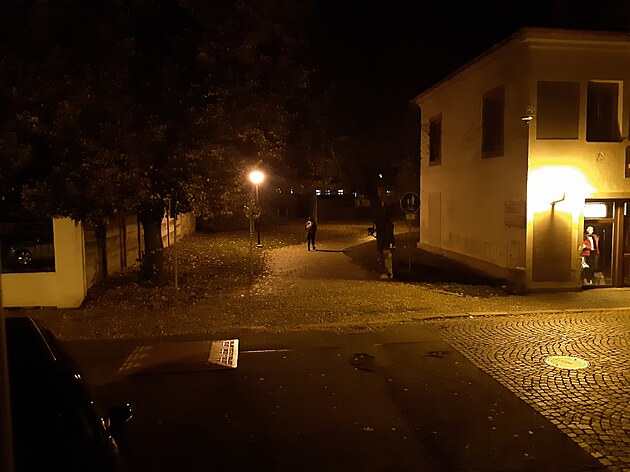 Takto vypadá vstup do parku ve Věžní ulici v Jihlavě, když osvětlení zrovna funguje, jak má.