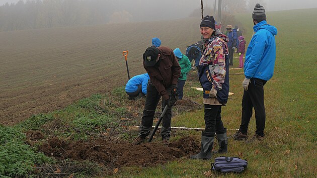 Podzimní sázení si lidé užili opravdu se vším všudy – sychravým počasím i zeminou plnou kamení.
