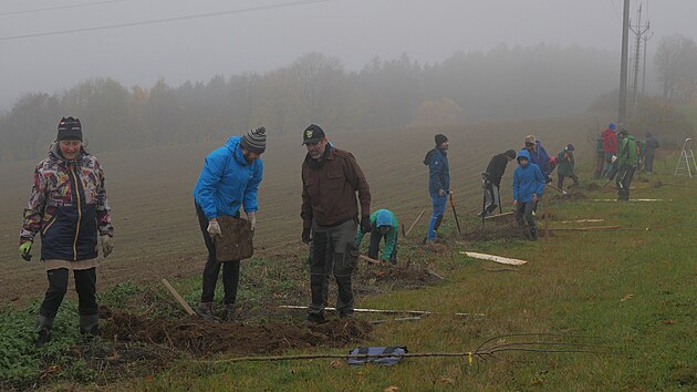 Podzimní sázení si lidé užili opravdu se vším všudy – sychravým počasím i zeminou plnou kamení.