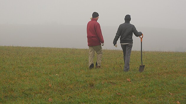 Podzimní sázení si lidé užili opravdu se vším všudy – sychravým počasím i zeminou plnou kamení.