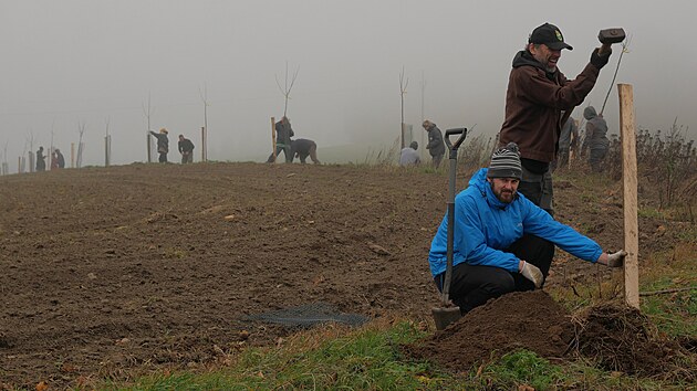 Podzimní sázení si lidé užili opravdu se vším všudy – sychravým počasím i zeminou plnou kamení.
