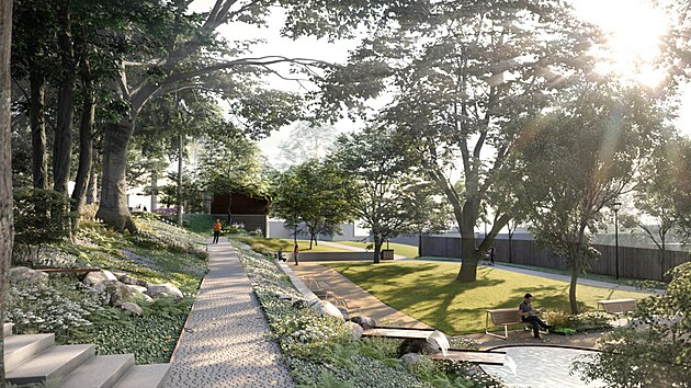 Zahrada získá terasovitý reliéf, přibude také zeleně - od trvalek až po nové keře a stromy.