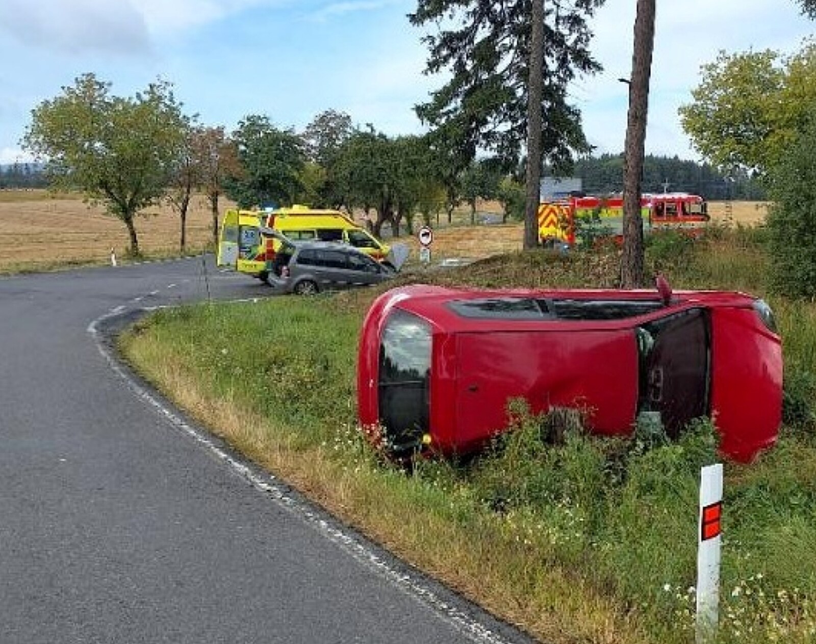 Před služebním vozidlem jel po hlavní silnici automobil Honda Civic. Když projížděl křižovatkou, kde je odbočka na obec Zboží, z vedlejší silnice náhle vyjela řidička vozidla Volkswagen Touran. Automobilu jedoucímu po hlavní silnici nedala přednost a obě vozidla se střetla. Náraz hondu odmrštil a ta skončila na boku v příkopu. Druhé vozidlo zůstalo stát na krajnici.